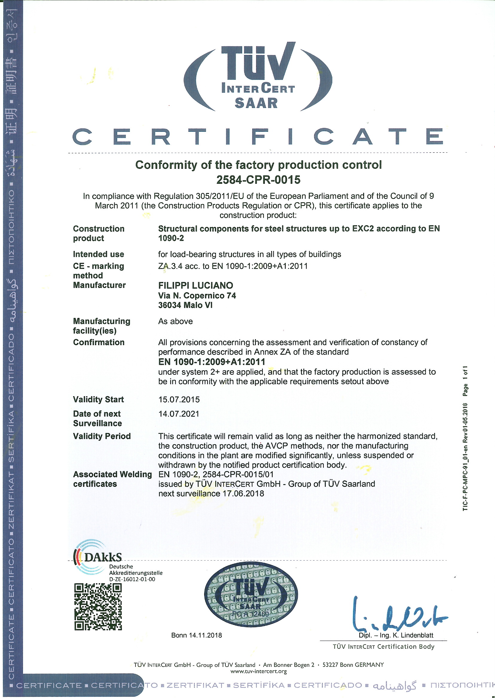 Dal 1° luglio 2014 è obbligatoria la Norma Armonizzata EN 1090-1 per l'immissione sul mercato degli elementi strutturali in acciaio (classe EXC2) in Italia ed in tutto lo Spazio Economico Europeo. Il contesto normativo si evolve così a partire dalla